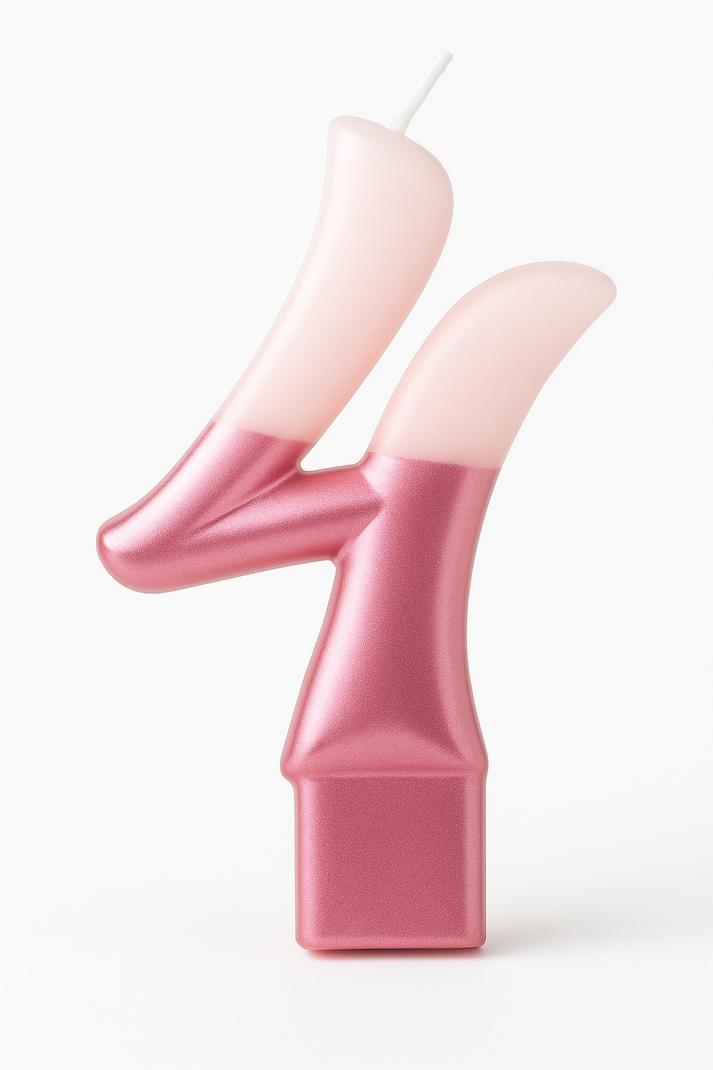 Add a sparkling touch to any celebration with this Metallic Dipped Pink Number 4 Birthday Candle. Featuring a modern design, the light pink candle is beautifully enhanced by darker pink metallic glitter on the bottom half. Perfect for customizing birthday cakes, this 3.2-inch wax candle stands out and illuminates any dessert setup with elegance. Mix and match with other numbers to create the perfect cake for any special occasion.