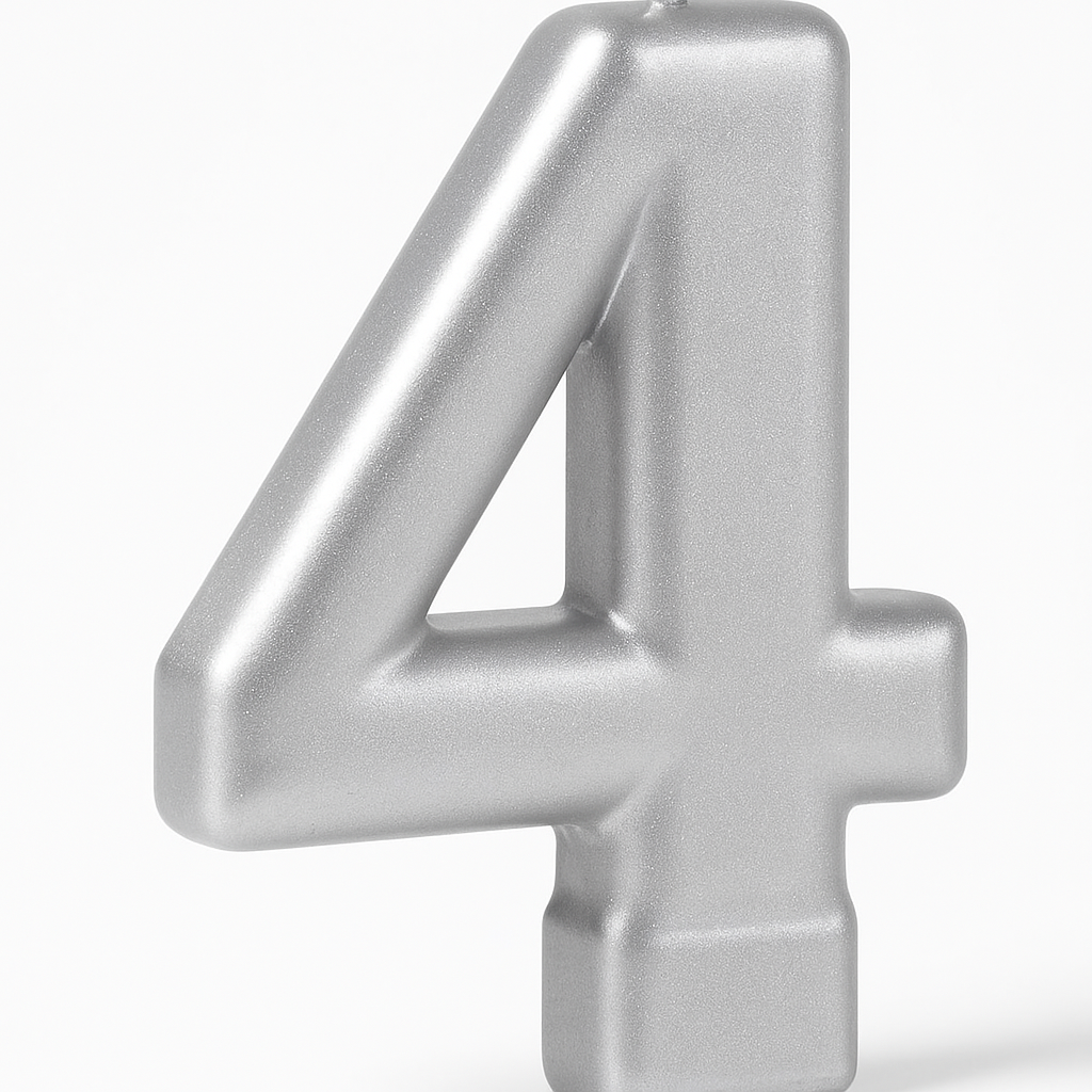 Add a touch of elegance to your celebration with this Silver Number 4 Metallic Birthday Candle. Featuring a shimmering metallic coating, this candle is perfect for enhancing any birthday or anniversary cake. Whether you're highlighting a milestone or simply enjoying a silver-themed party, this candle makes a stunning statement. Pair it with other numbered candles to create a custom look for any occasion. Measuring 2 1/4" wide by 3 1/4" long, it's a dazzling addition to your special day.