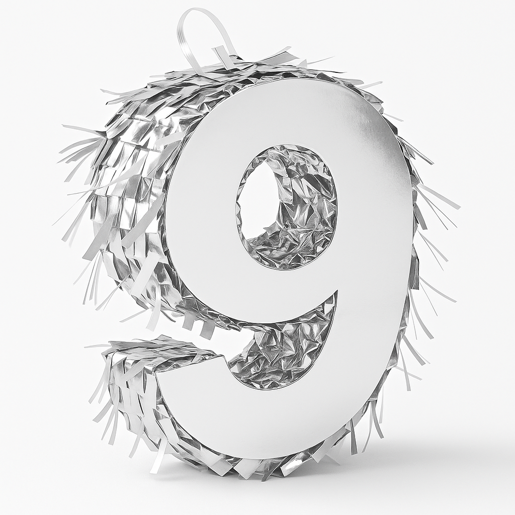 Add a touch of sparkle to your festivities with this Metallic Silver Number 9 Mini Pinata. Perfect for birthdays, anniversaries, or any special occasion, this shimmering decoration is crafted from cardstock with dazzling foil strips. Standing at 6 inches tall, it is ideal for tabletop displays or can be hung for a glittering effect. Mix and match with other number pinatas or pair with a variety of party decorations to create a captivating atmosphere. Lightweight and eye-catching, this stylish pinata ensures your celebration will be truly memorable.