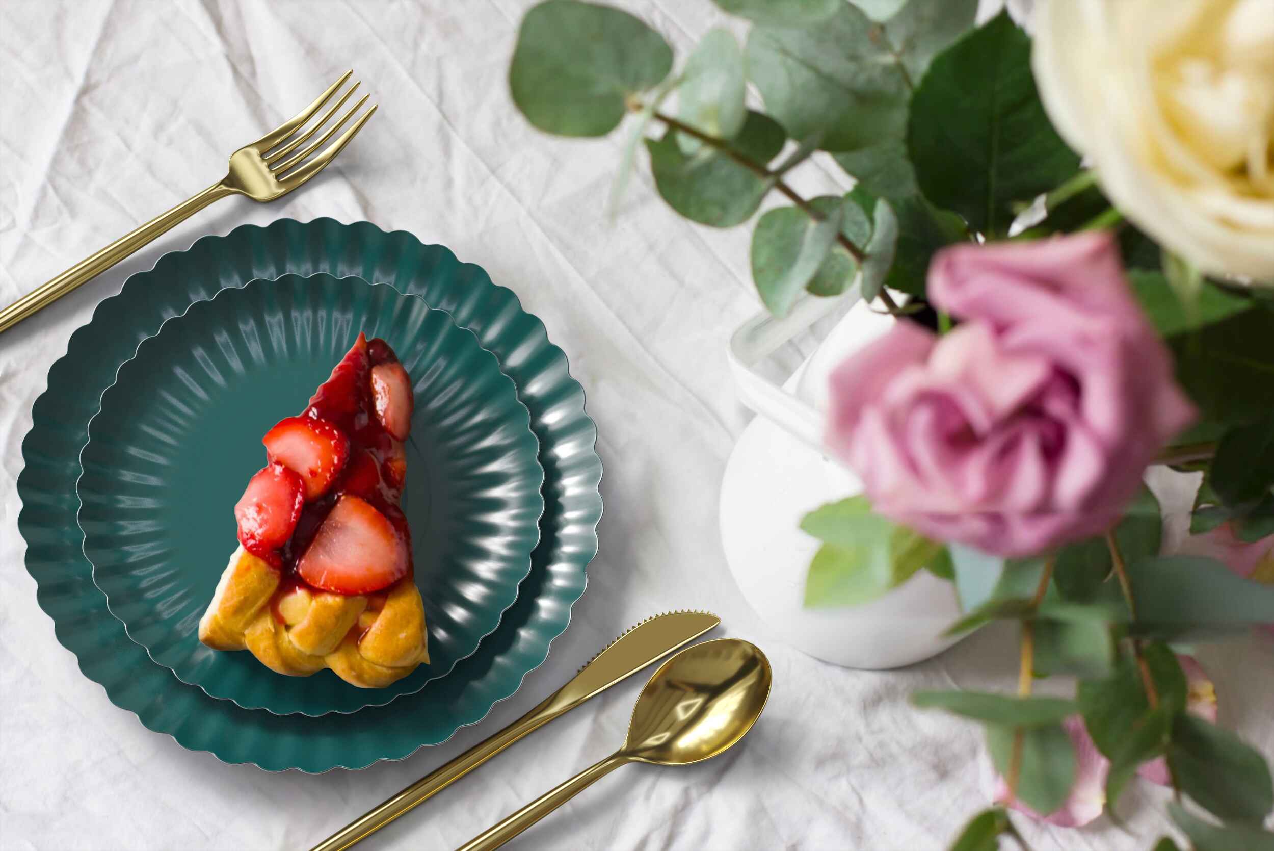 Conquer any party with these daring 10.5 In. Scalloped Paper Plates in Black Aqua. Showcasing a set of 10, elevate your event with a touch of sophistication and style. Make a lasting impression with these sturdy plates that can handle any culinary adventure!