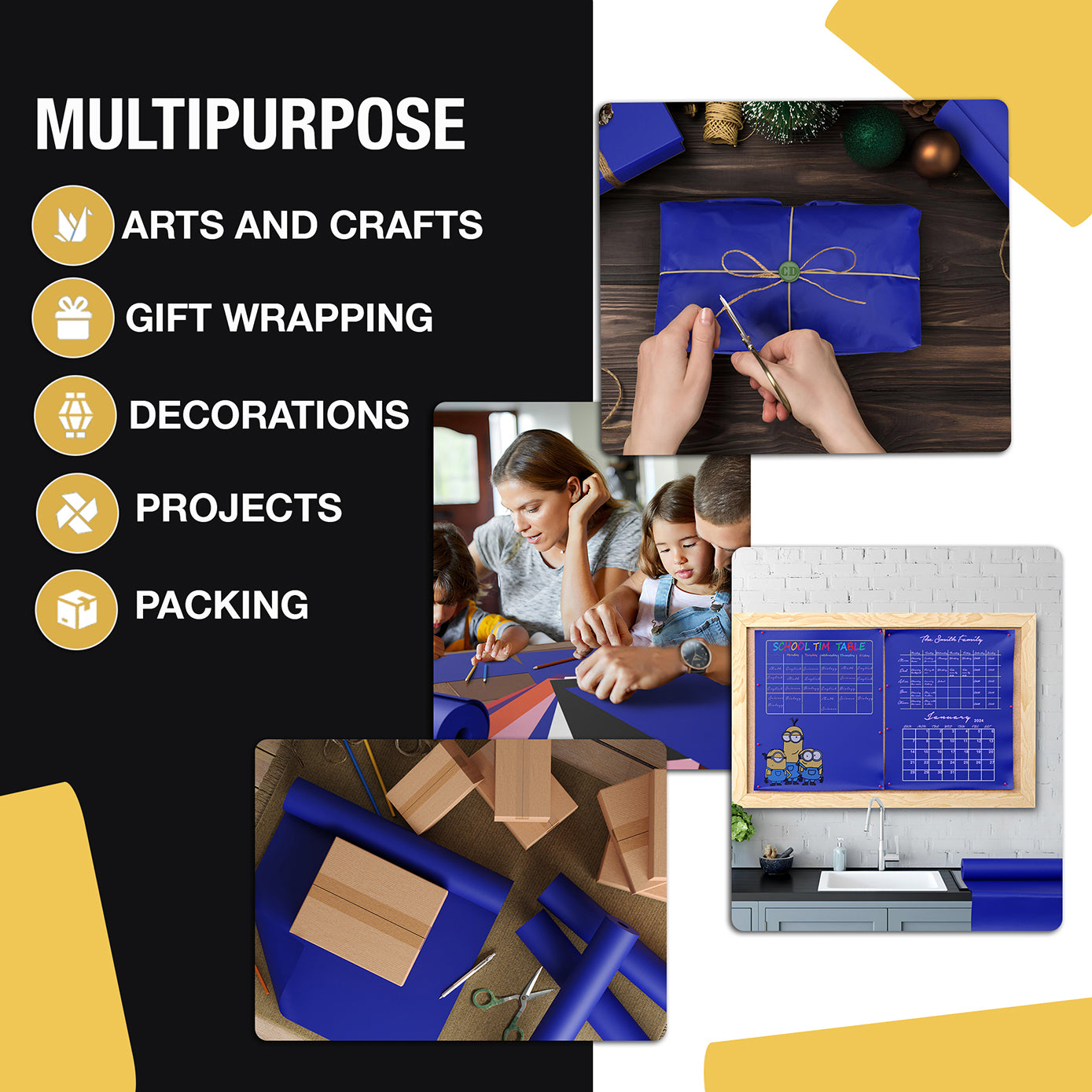 Our 17.75" x 110' dark blue kraft paper roll is perfect for a wide range of uses, from wrapping gifts and crafts to decorating and protecting surfaces. Its durable construction ensures it can withstand various applications without tearing or puncturing. The rich dark blue color adds a touch of elegance and sophistication to any project. Whether you're wrapping gifts for a special occasion or creating custom art pieces, this kraft paper roll provides a stylish and professional finish.