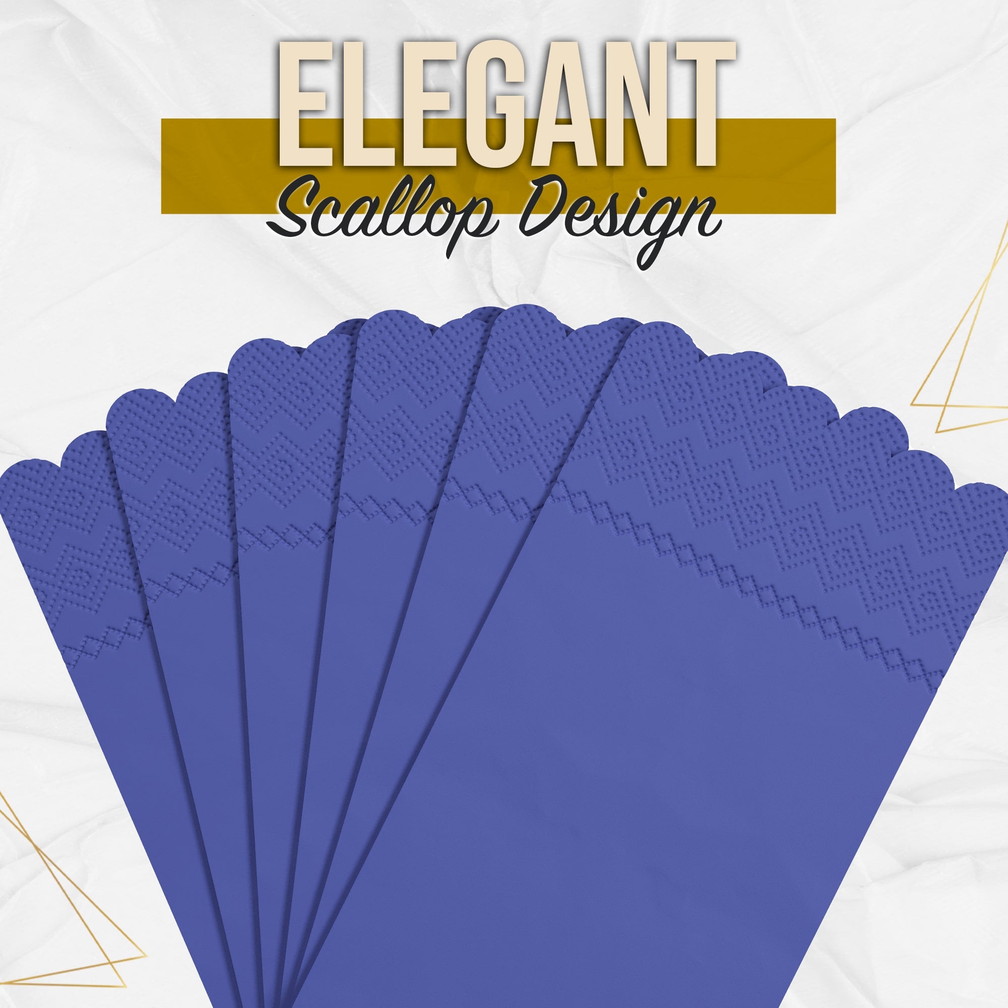Elevate your table setting with these 3 Ply Periwinkle Scalloped Napkins. Their soft, durable three-ply construction ensures reliable absorbency and a luxurious feel. The delicate scalloped edges and soothing periwinkle color add a charming touch to any occasion, making them perfect for parties, gatherings, or everyday use. With 20 napkins per pack, you have plenty to impress your guests with both style and practicality.