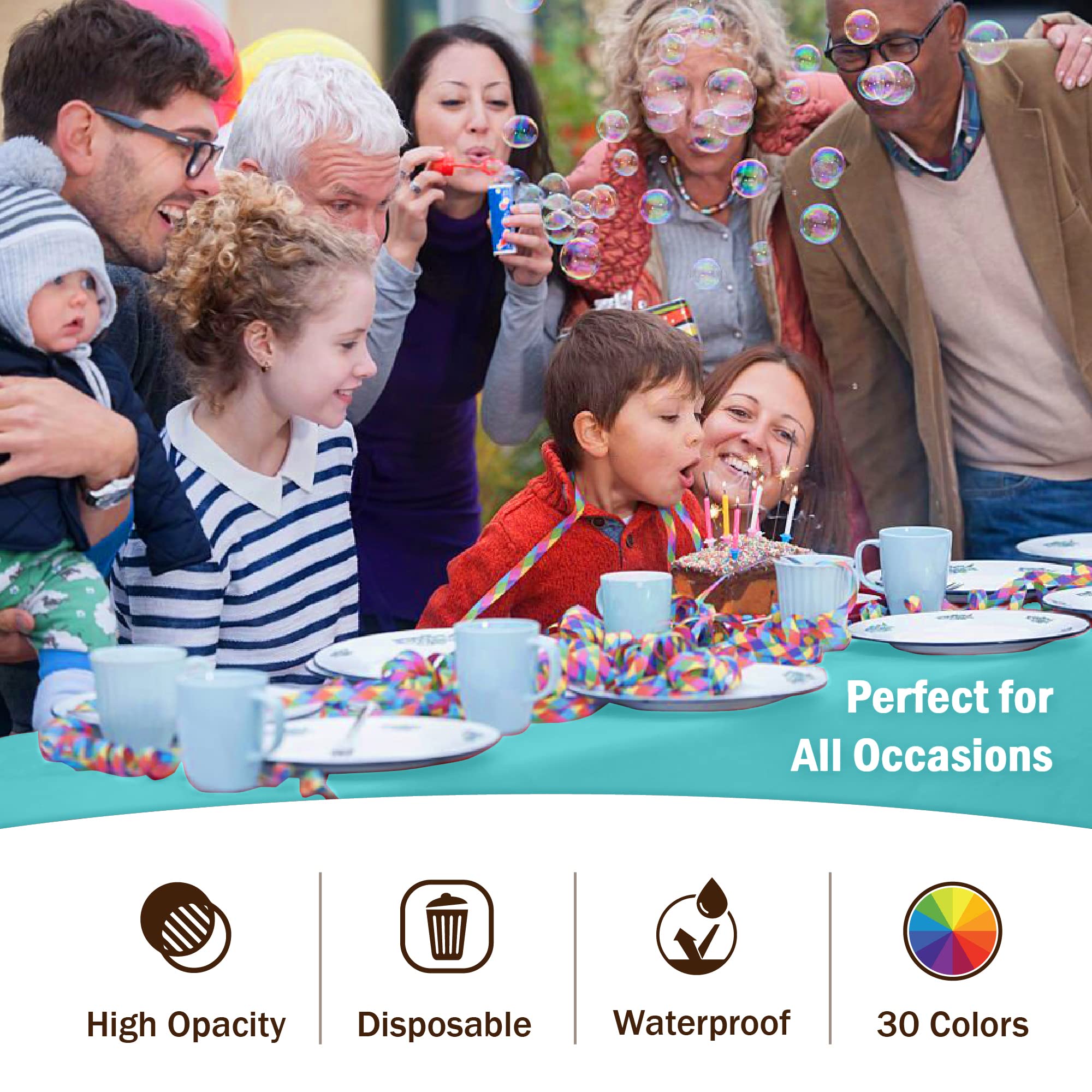 The table covers worked out great for our celebratory gathering. The color and size for the 5-foot-round tables was perfect. The white rectangular covers for display and food tables added a pleasant contrast. The hall was inviting, stylish and festive when set up was completed. Thank you for supplying quality table cover.