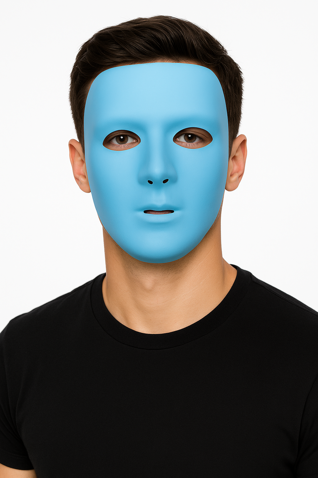 Elevate your team spirit with this Light Blue Full Face Mask. Crafted for versatility, this plastic mask features a sleek split design with eye, nose, and mouth openings for comfort. The attached elastic ensures a secure fit for most teens and adults. Perfect for raves, masquerade balls, Venetian costumes, and fun 80s party outfits. Plus, it glows under black light for an added visual effect. Size: 7" x 7" x 3" (17 x 17 x 7 cm).