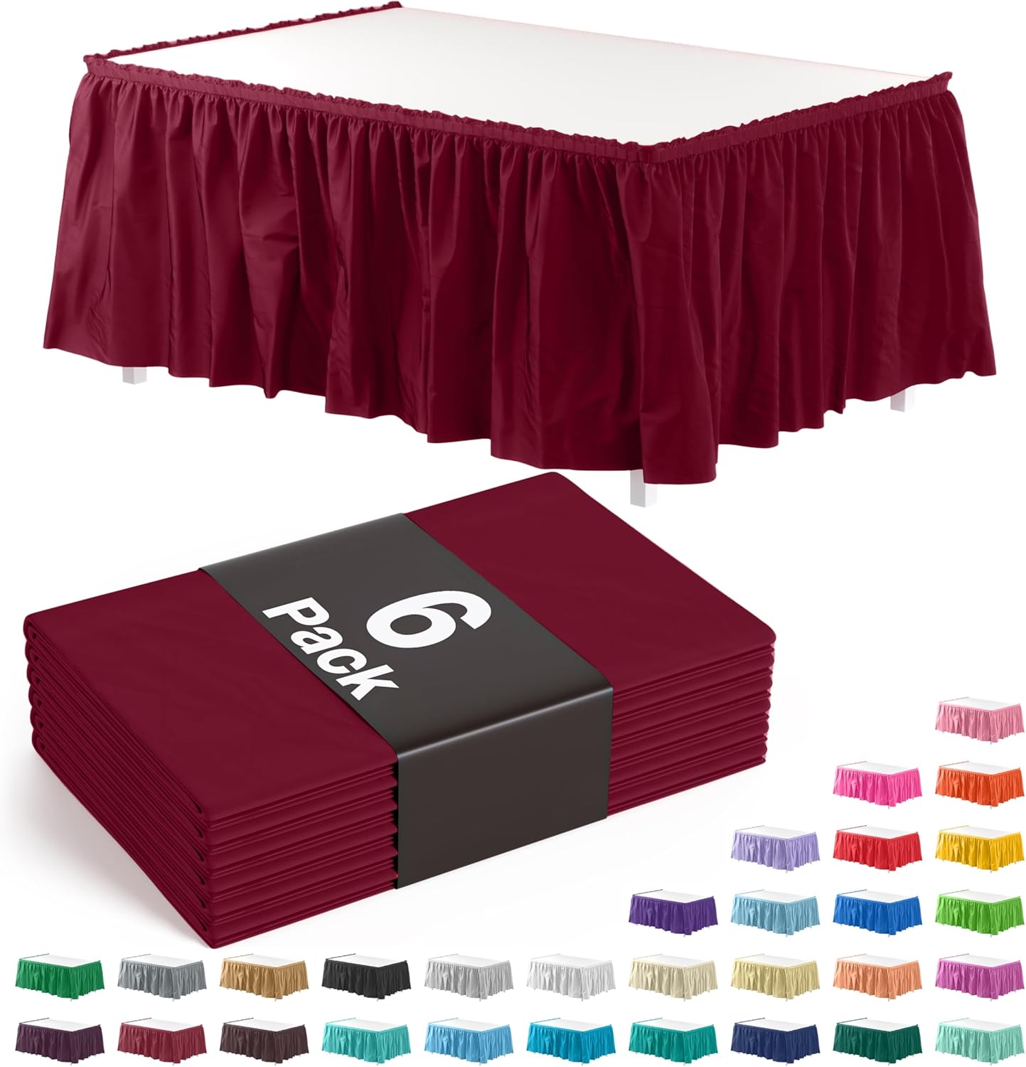 Burgundy Plastic Table Skirt | 6 Pack