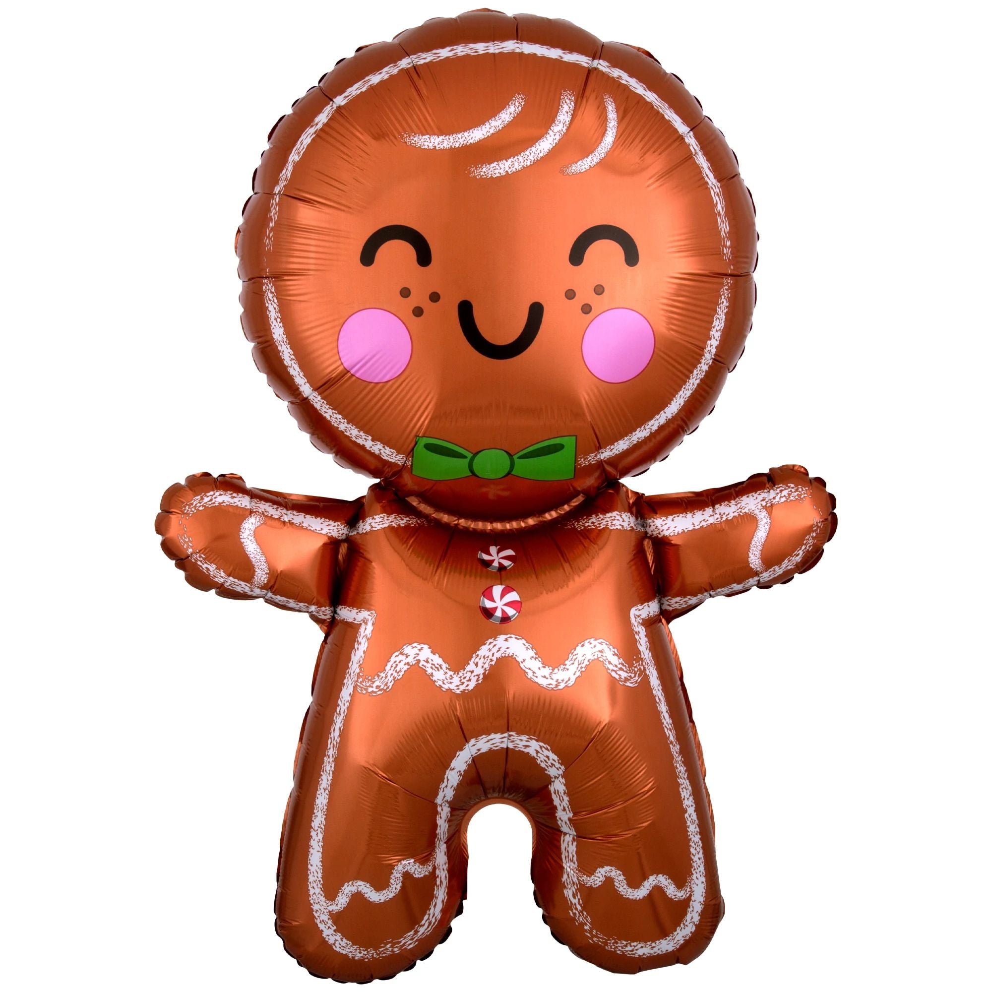 Celebrate the holiday season with our Festive Gingerbread Man Super Shape Balloon! This charming metallic foil balloon adds a joyful touch to any Christmas or Hanukkah celebration. Perfect for parties or as a whimsical decoration, this delightful gingerbread man features adorable details that capture the spirit of the season. Bring festive cheer to your event with this eye-catching balloon centerpiece!