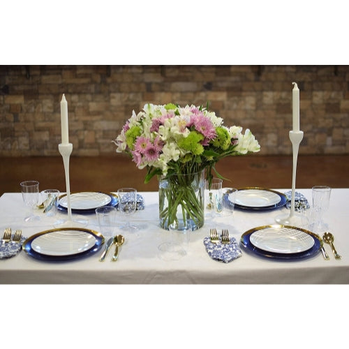 Constructed from premium plastic, our plates mimic the luxurious look and feel of real china, while their disposable nature ensures easy cleanup. To achieve a cohesive look, pair these plates with our matching metallic cutlery line, further enhancing the visual appeal of your table.
