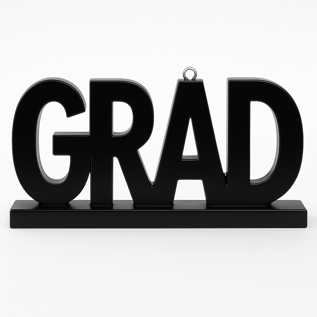 Celebrate your big achievement with our "GRAD" Die-Cut Balloon Weight. Perfectly crafted to hold your graduation balloons in style, this sleek accessory keeps your decorations secure and festive. Measuring 5.4 inches in height and 11 inches in width, it's an ideal addition to your graduation party décor. Elevate the celebration effortlessly with this must-have graduation party essential!