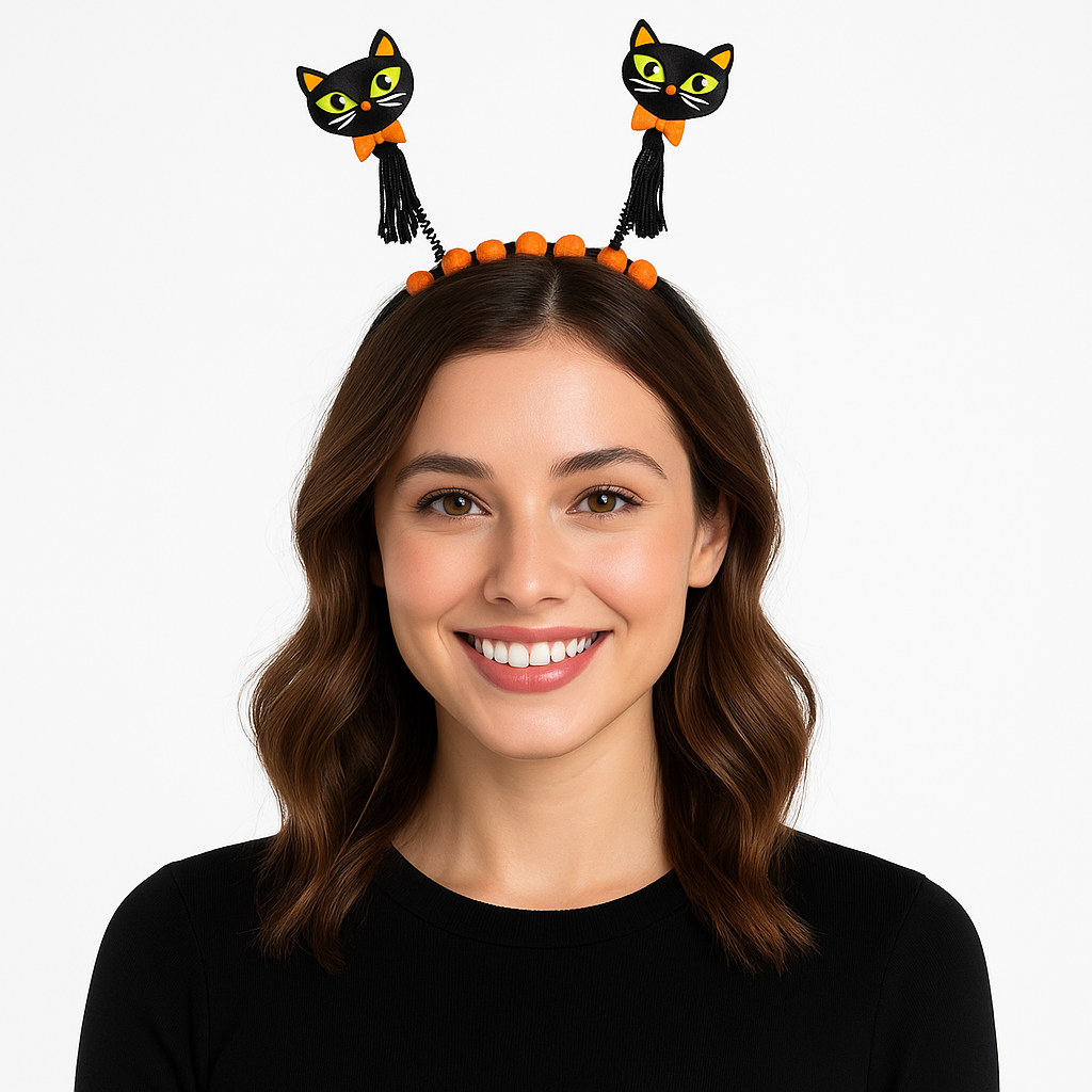 Get ready to pounce into Halloween fun with this playful Tassel Kitty Cat Headbopper! Perfect for costume parties or a whimsical touch to any spooky ensemble, this headband features adorable kitten toppers with tassels that bounce with every step. Add a dash of charm and a lot of fun to your festivities with this must-have accessory. Ideal for adults and kids alike, it's the purr-fect addition to your Halloween celebration!