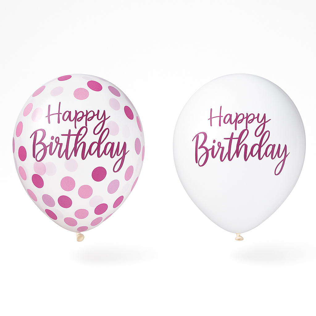 Brighten up any birthday celebration with these Sparkle Confetti "Happy Birthday" Latex Balloons. Each 12-inch balloon is filled with vibrant pink confetti, ready to add a festive touch to the party. Simply fill them with helium and shake to wake the confetti magic inside. Perfect for creating a stunning balloon bouquet or scattering around the room for an enchanting display. Sold in packs of 6, these balloons are an effortless way to infuse joy and color into your event.