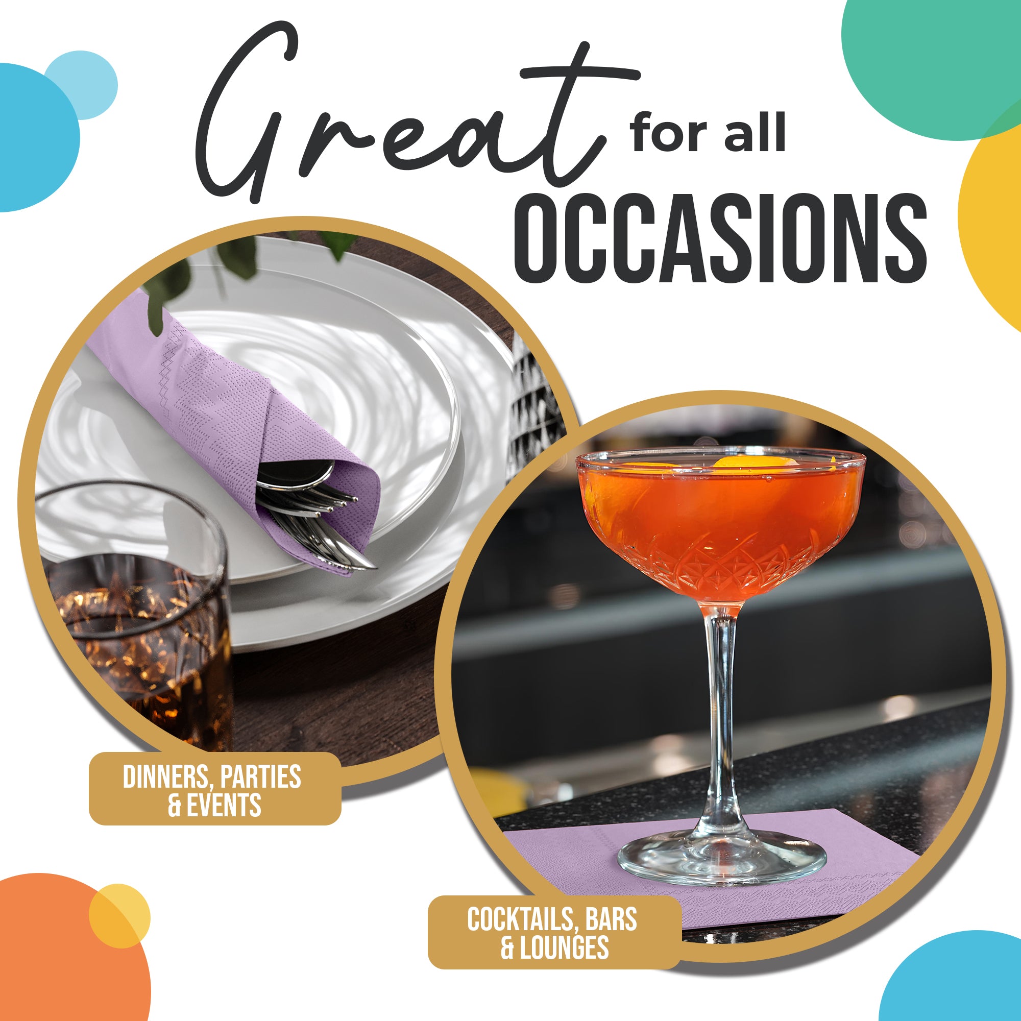 Set the perfect table with these elegant Lavender Luncheon Napkins. Each pack contains 100 premium-quality napkins in a sophisticated lavender hue that complements any occasion—from casual gatherings to formal dinners. Soft yet durable, these napkins deliver reliable performance while adding a touch of refined style to your tablescape. Ideal for restaurants, catering events, or home entertaining, they're the practical choice that doesn't compromise on elegance. Stock up and impress your guests with attention to detail that matters.