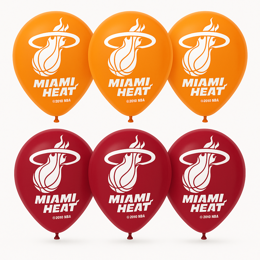 Ignite your passion for basketball with our Miami Heat 12-Inch Latex Balloons, a perfect addition to any sports-themed celebration! This pack of six vibrant, printed balloons features the iconic Miami Heat logo, making them an essential decoration for game days, parties, or fan gatherings. Constructed from durable latex, these balloons are ideal for both indoor and outdoor use. Show your team spirit and bring the heat to your next event with these crowd-pleasing decorations!
