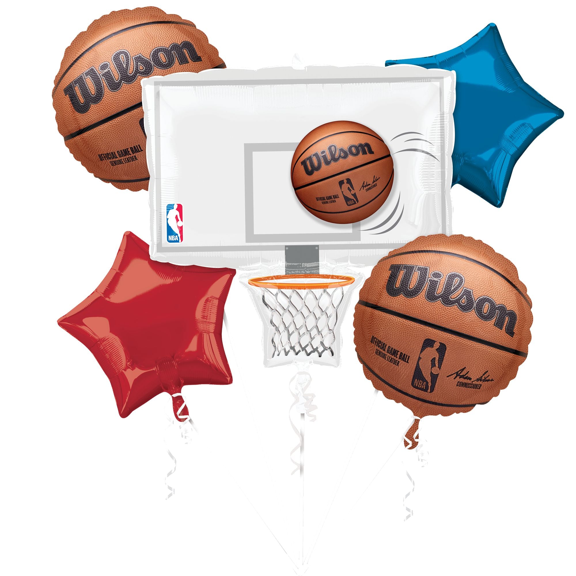 Celebrate your love for basketball with the NBA Wilson Basketball Foil Balloon Bouquet. Perfect for sports enthusiasts, this vibrant arrangement features realistic basketball designs alongside colorful star-shaped balloons. Ideal for parties, sports events, or everyday decorations, these metallic balloons add a slam-dunk flair to any occasion!