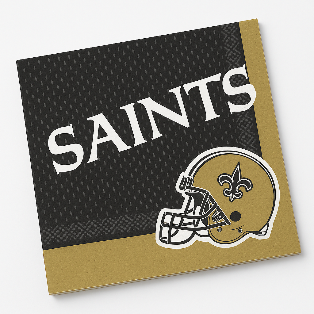 Elevate your game day festivities with these New Orleans Saints NFL Lunch Napkins. Perfect for any sports-themed gathering, these printed napkins showcase the iconic Saints helmet and logo. Made for everyday use, they add a spirited touch to any meal while celebrating your team's pride. Durable and stylish, they're an essential for any Saints fan's party arsenal.