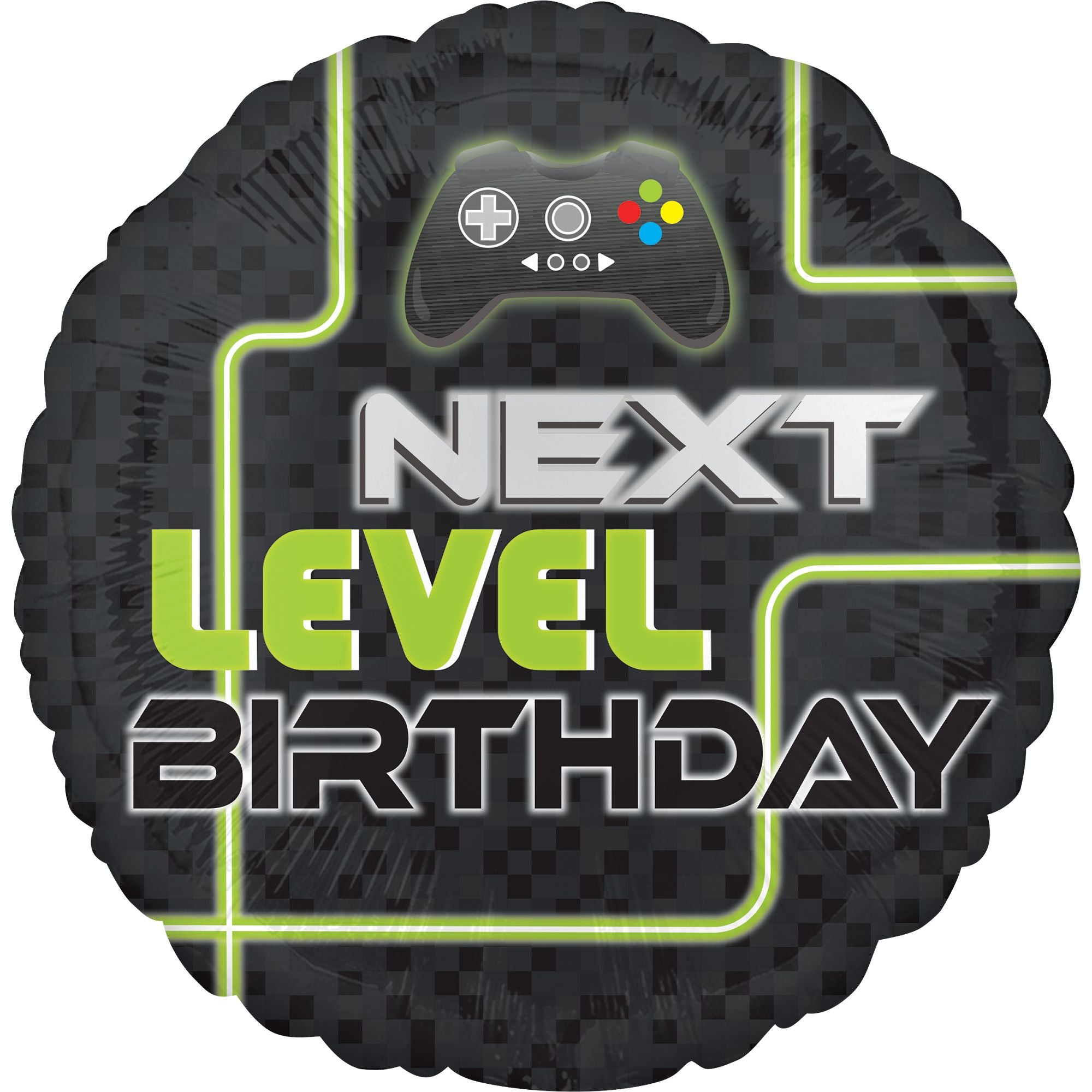 Take your birthday celebrations to the next level with our "Next Level Birthday" gaming-themed metallic balloon! Perfect for juvenile birthday parties, this 18-inch foil balloon features a sleek design with vibrant colors and a cool gaming controller graphic. Ideal for gamers of all ages, it adds fun and excitement to every celebration. Elevate any everyday event with this standout balloon!