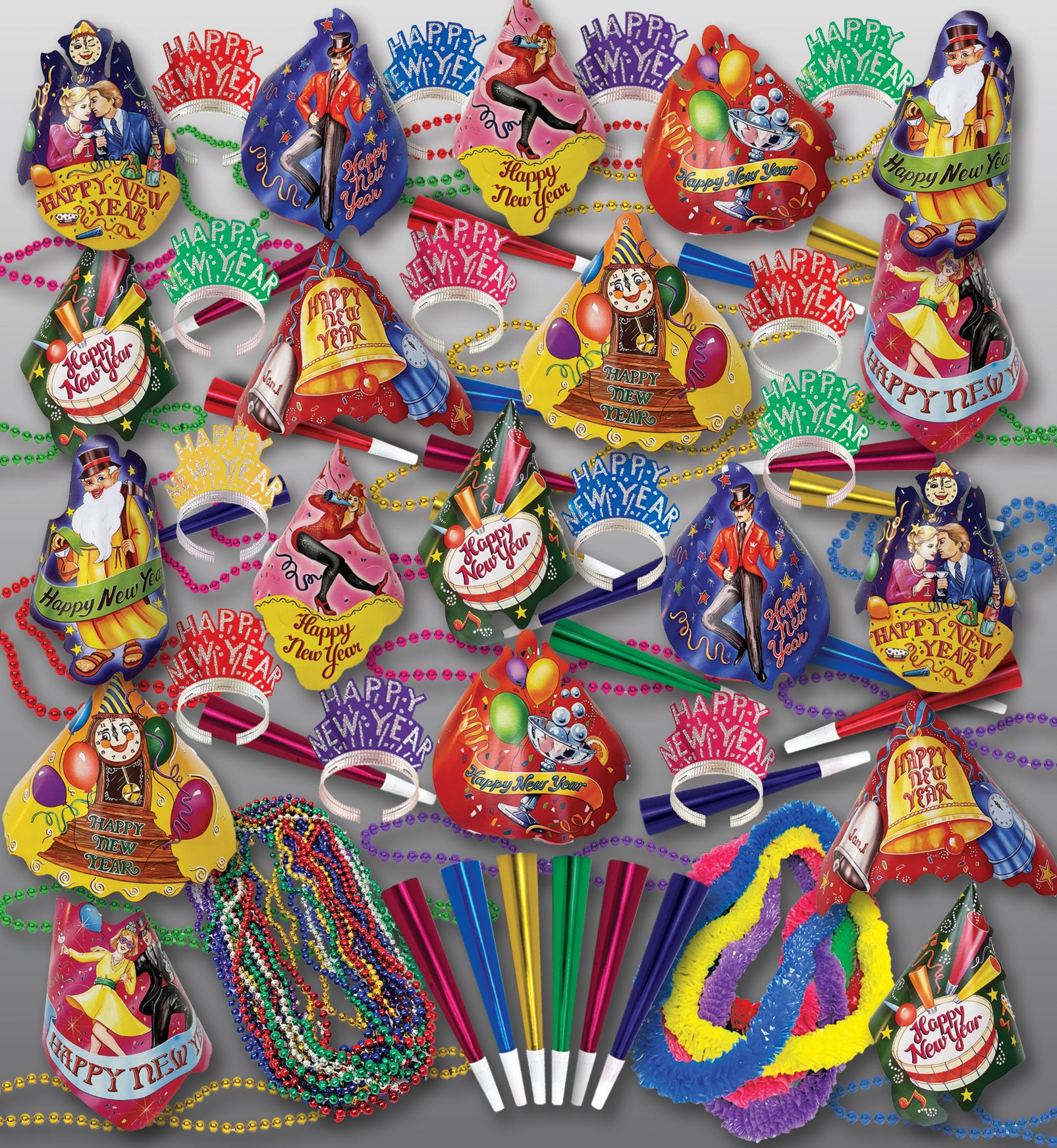 Designed with quality and style in mind, each item in this set is crafted for durability and festive appeal. From the striking hats to the vibrant bead necklaces, every piece is carefully made to elevate your celebration and keep the party going strong. Simplify your party planning and create lasting memories with a kit that offers both value and convenience, perfect for gathering friends, family, and colleagues to welcome in the New Year.