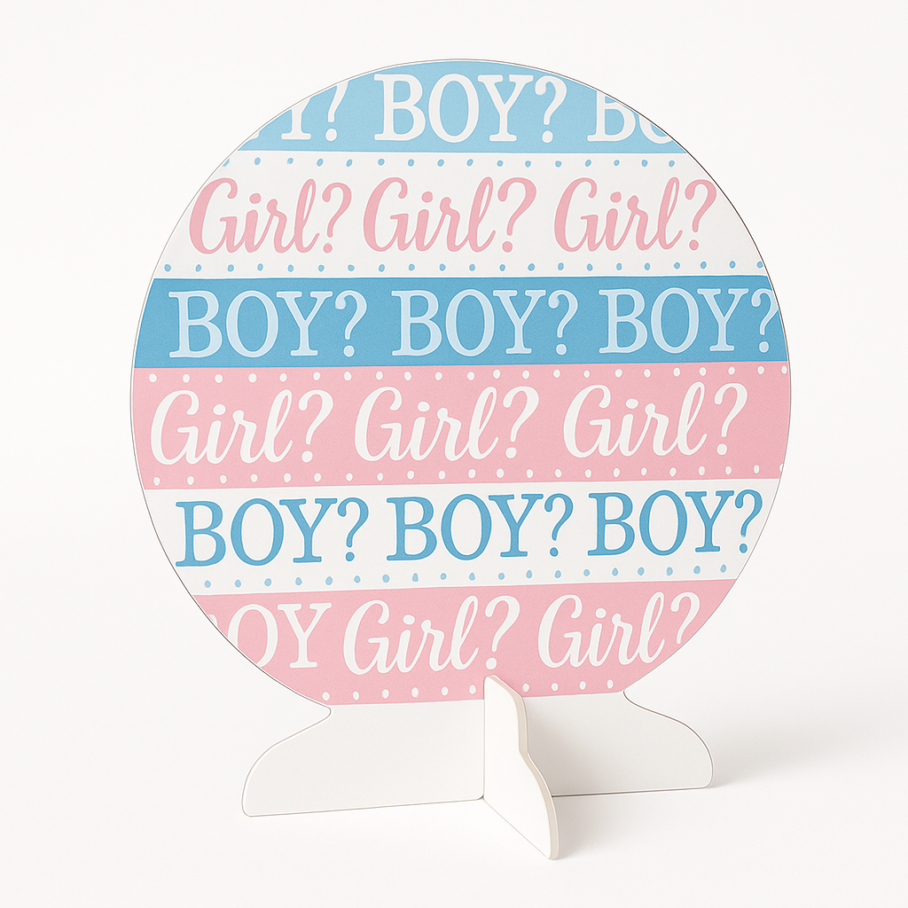 Celebrate the excitement of your baby shower with our delightful "Pink or Blue?" Table Decoration. This centerpiece is perfect for creating a playful atmosphere, featuring alternating pink and blue stripes with "Boy?" and "Girl?" text. Ideal for gender reveal parties, it adds a fun touch to your table setup, keeping your guests guessing. Make your special day unforgettable with this charming decoration!