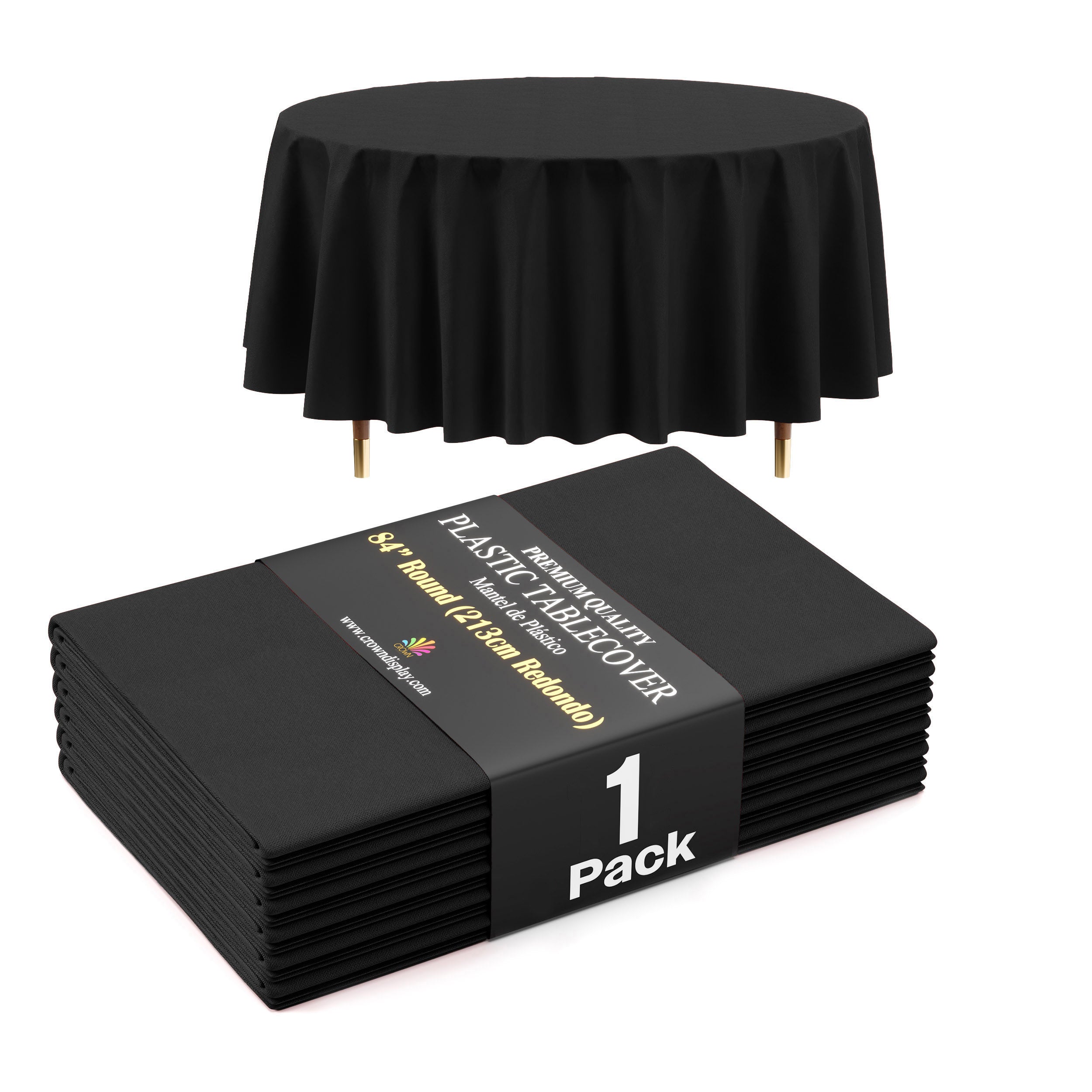 Elevate your event with this premium 108" round black table cover, the perfect foundation for sophisticated tablescapes. Crafted from quality fabric, it drapes elegantly to the floor, creating a polished, professional appearance for weddings, galas, corporate functions, and upscale celebrations. The generous size accommodates standard round banquet tables while the classic black hue complements any décor theme or color scheme. Easy to care for and reusable for countless events, this versatile table cover delivers luxury aesthetics without the luxury price tag. Transform your venue instantly with timeless elegance.