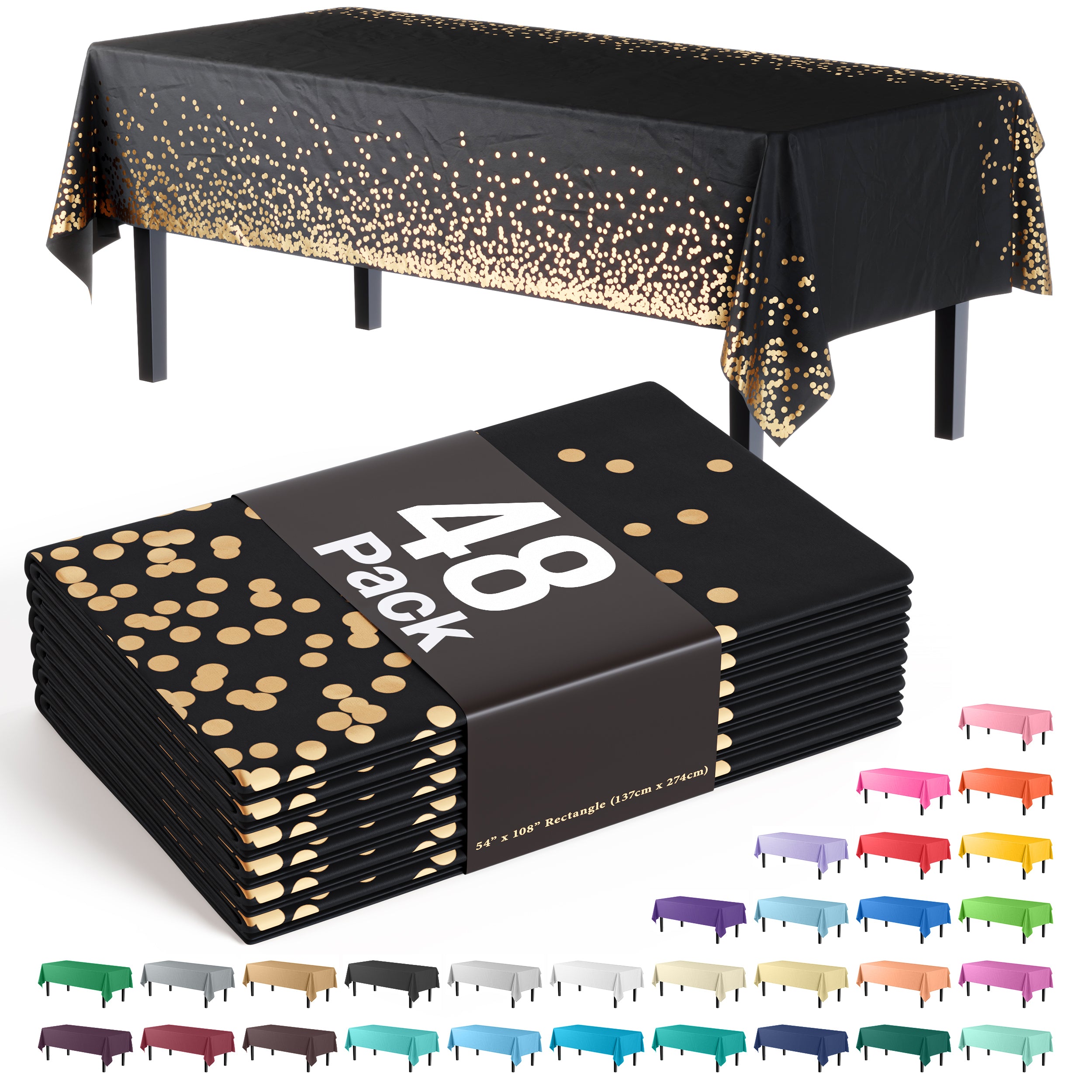 Printed Plastic Table Cover Black/Gold | Case of 48