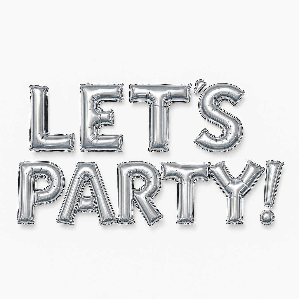 Elevate your celebration with this stunning silver metallic "LET'S PARTY!" foil balloon banner. Perfect for any occasion, this air-filled Mylar decoration adds a touch of glamour and fun to your party decor. Easy to inflate and display, it’s ideal for birthdays, anniversaries, or any day worth celebrating. Make your event unforgettable with this eye-catching party essential!