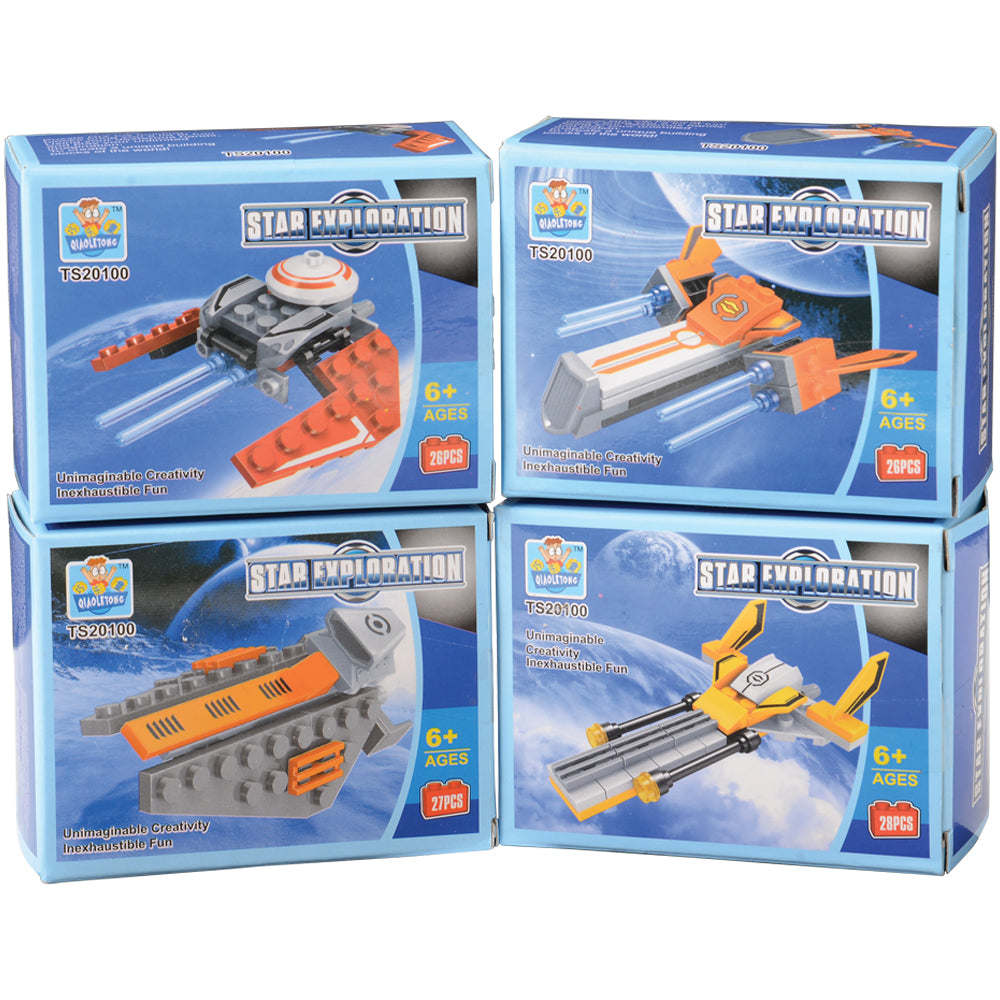 Enthrall your little master builders with these Star Exploration brick sets. Easily put their brick-building skills and imagination to the test as they construct the intergalactic ship of their dreams! In 4 assorted designs, each set comes individually packaged, making them perfect as party favors for your next event.