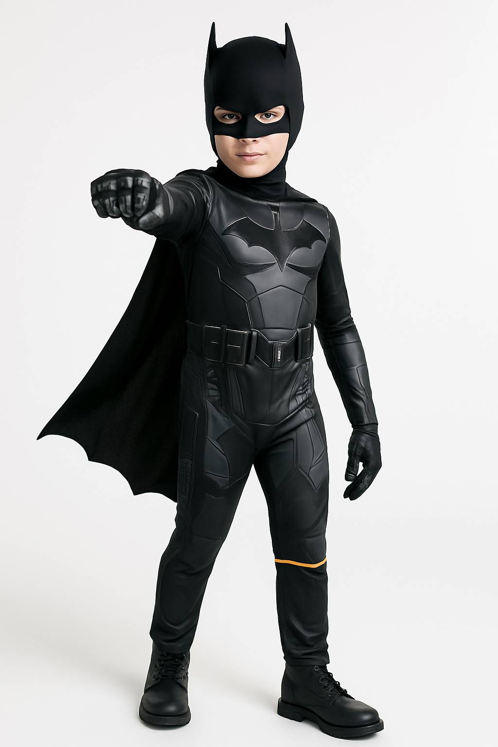 Equip your young hero with the ultimate crime-fighting ensemble! Inspired by "The Batman" movie, this stunning black jumpsuit, complete with an iconic cape and mask, transforms your child into the legendary superhero. Perfect for saving Gotham City or collecting candy, this costume comes in various sizes to suit ages 4-16. Get ready for action and adventure any time of the year!
