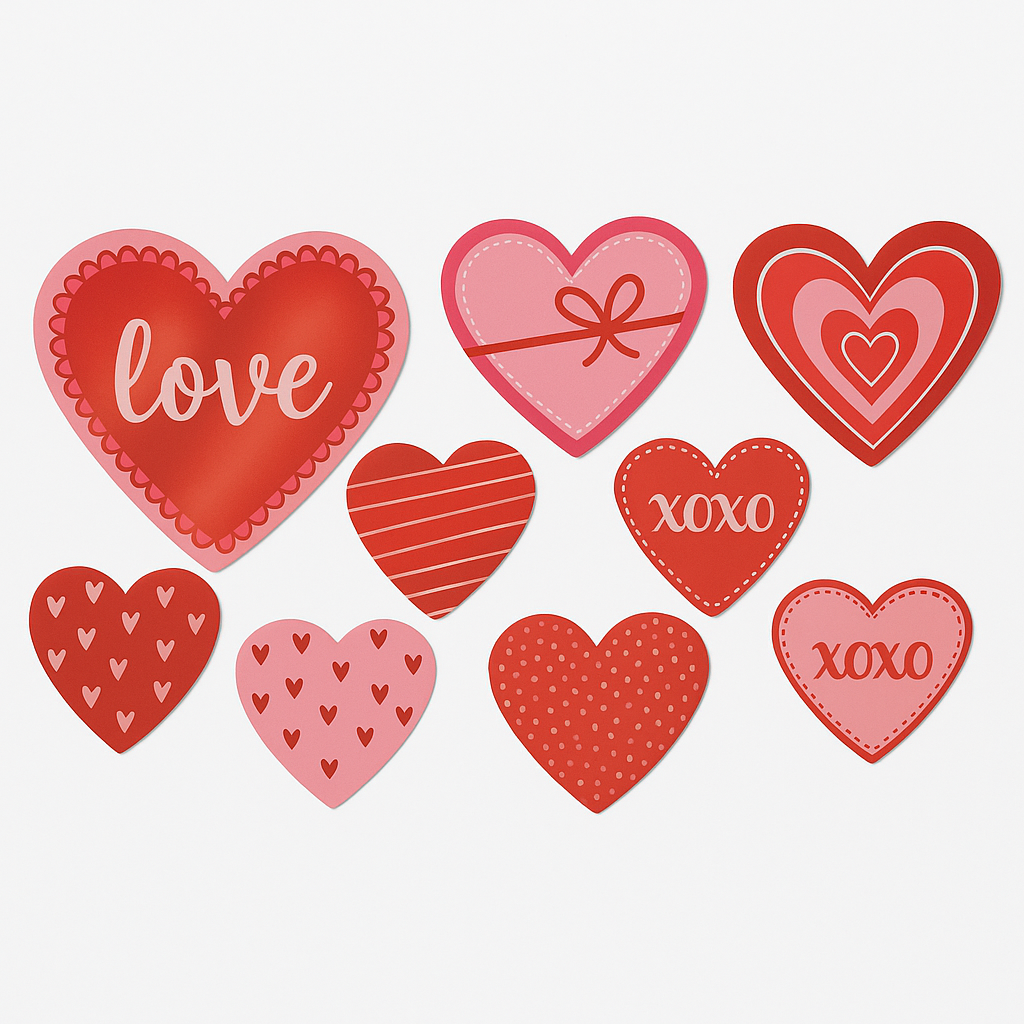 Add a touch of love to your Valentine's Day celebrations with these vibrant heart cutouts, perfect for decorating walls or creating festive displays. Designed especially for St. Valentine's Day, these eye-catching decorations come in a convenient pack, making it easy to transform any space into a love-filled haven. Ideal for parties, classrooms, or home décor, these cutouts promise to spread joy and warmth. Celebrate with heart this season!